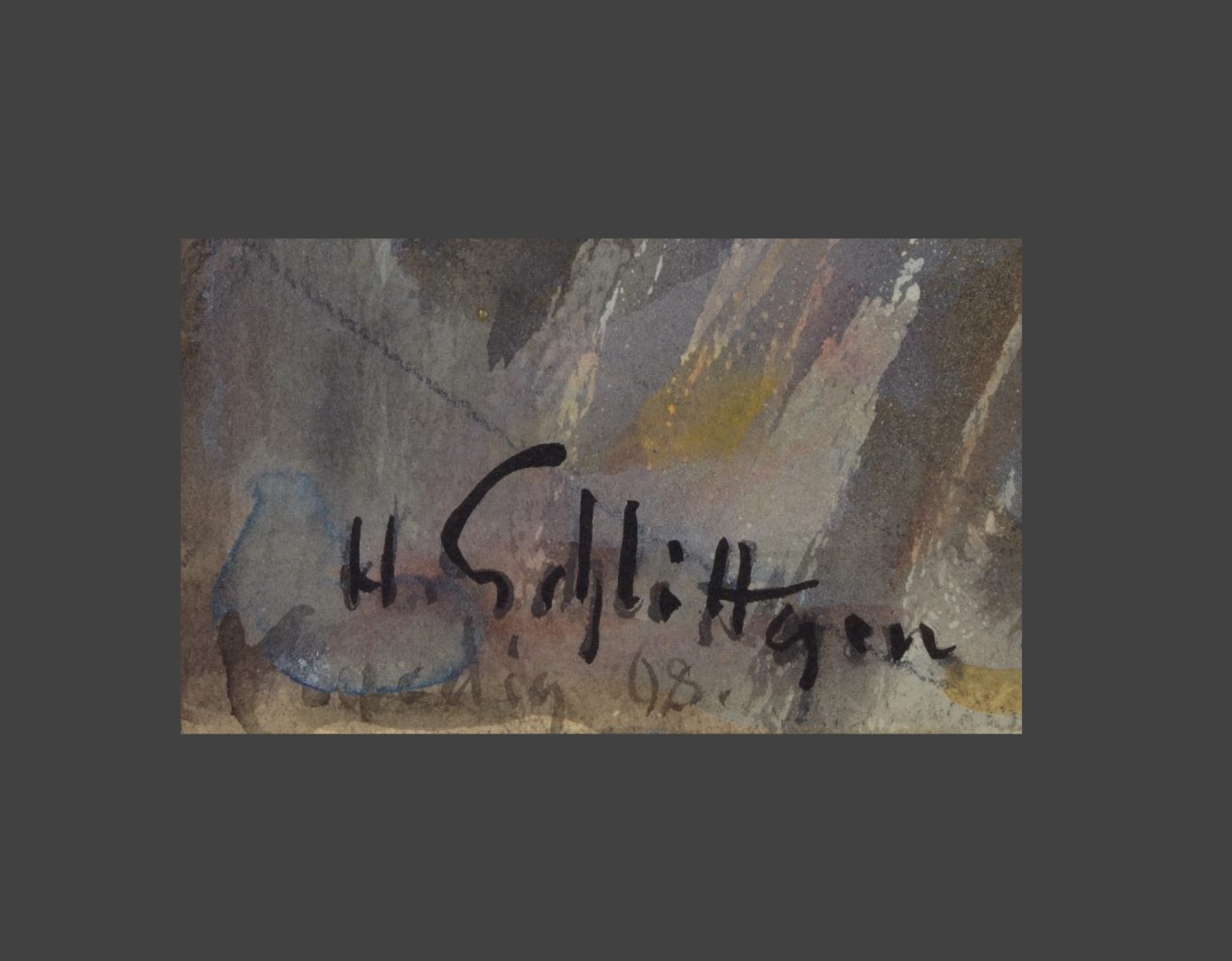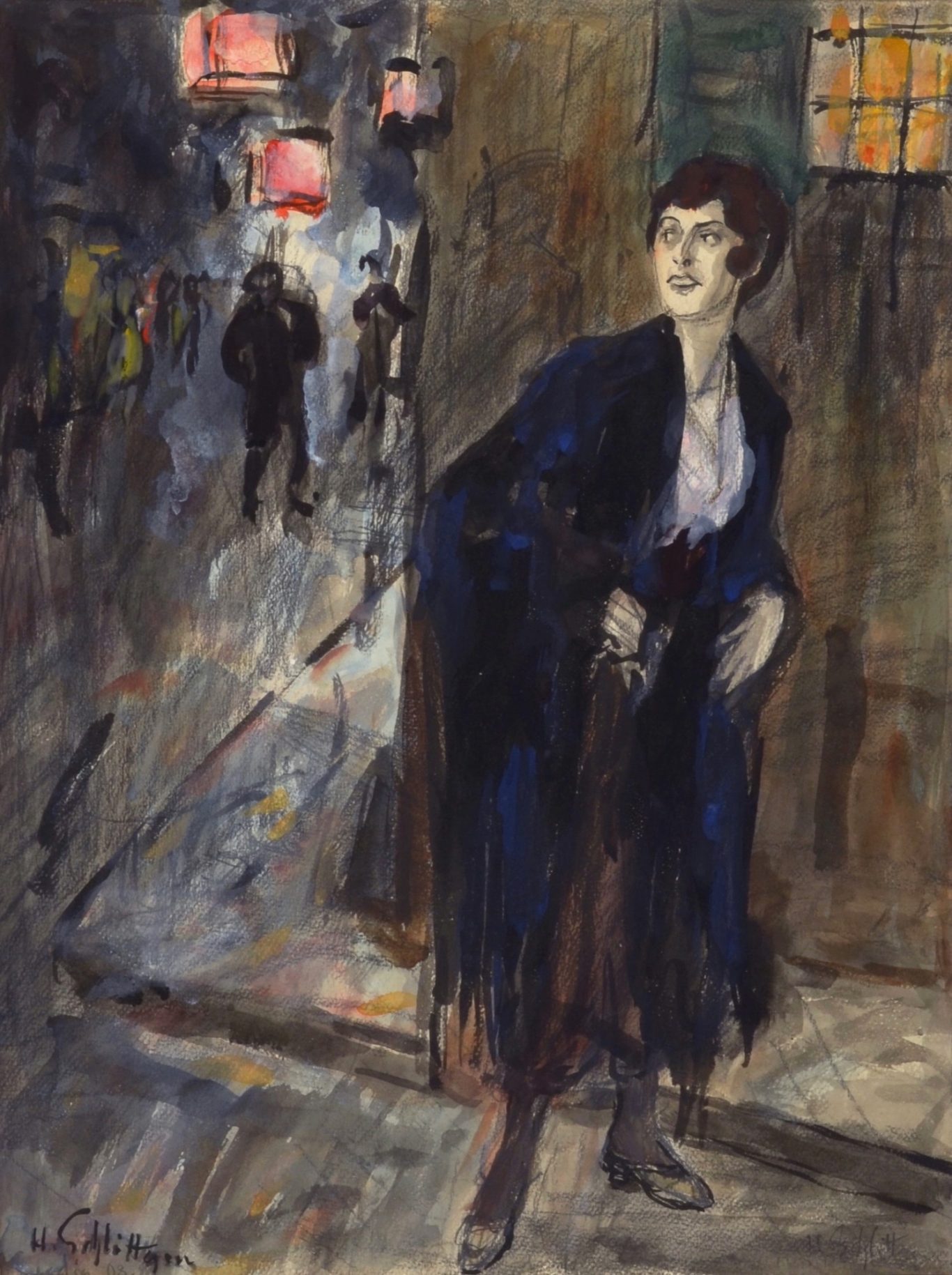 Hermann Schlittgen, Venice, 1908, watercolor, pastel and pen on paper, mounted on cardboard, 50.6 x 39.3 cm, signed lower left and right "H. Schlittgen", inscribed (recto) lower left “Venedig 08”, unframed.