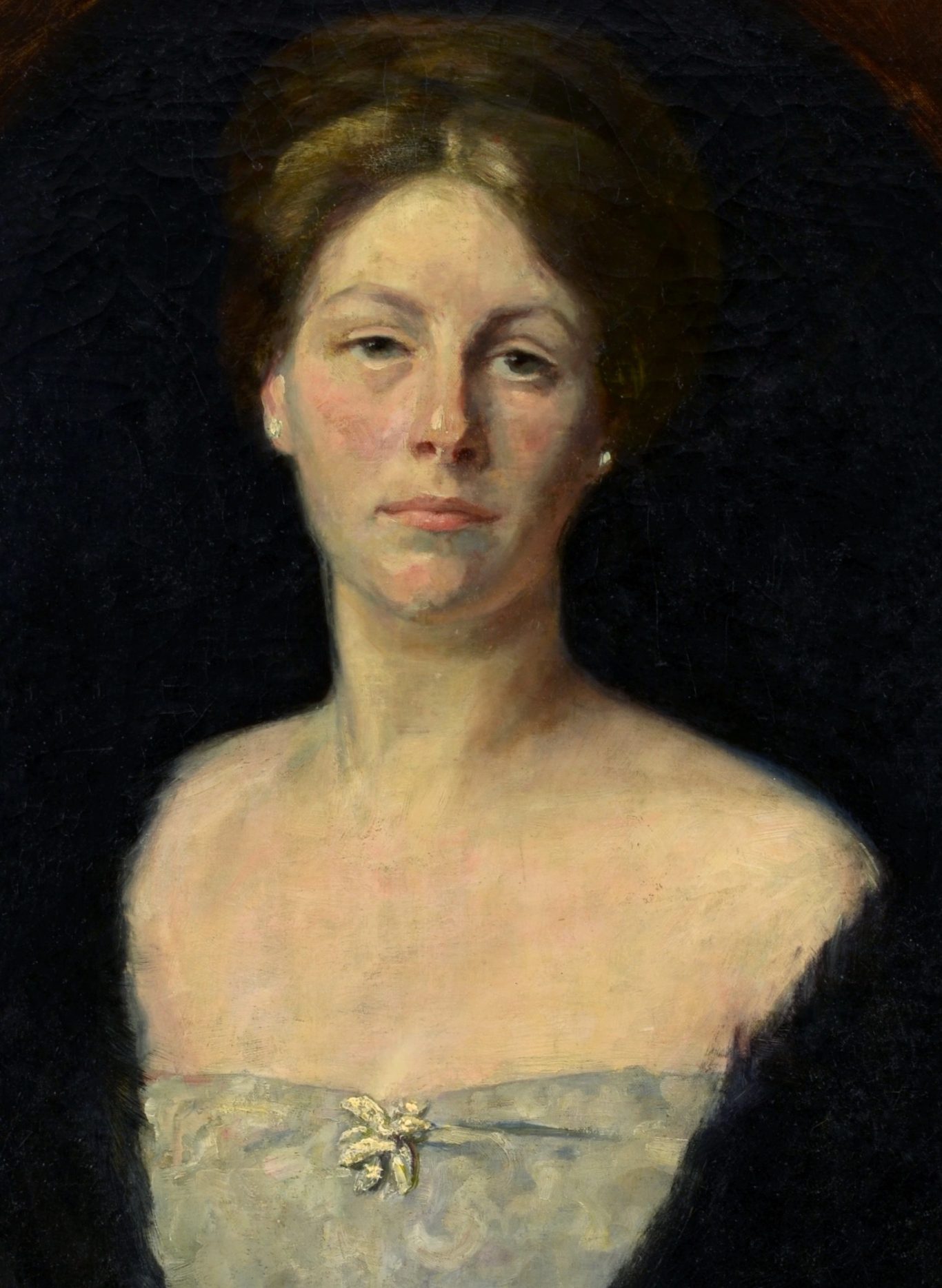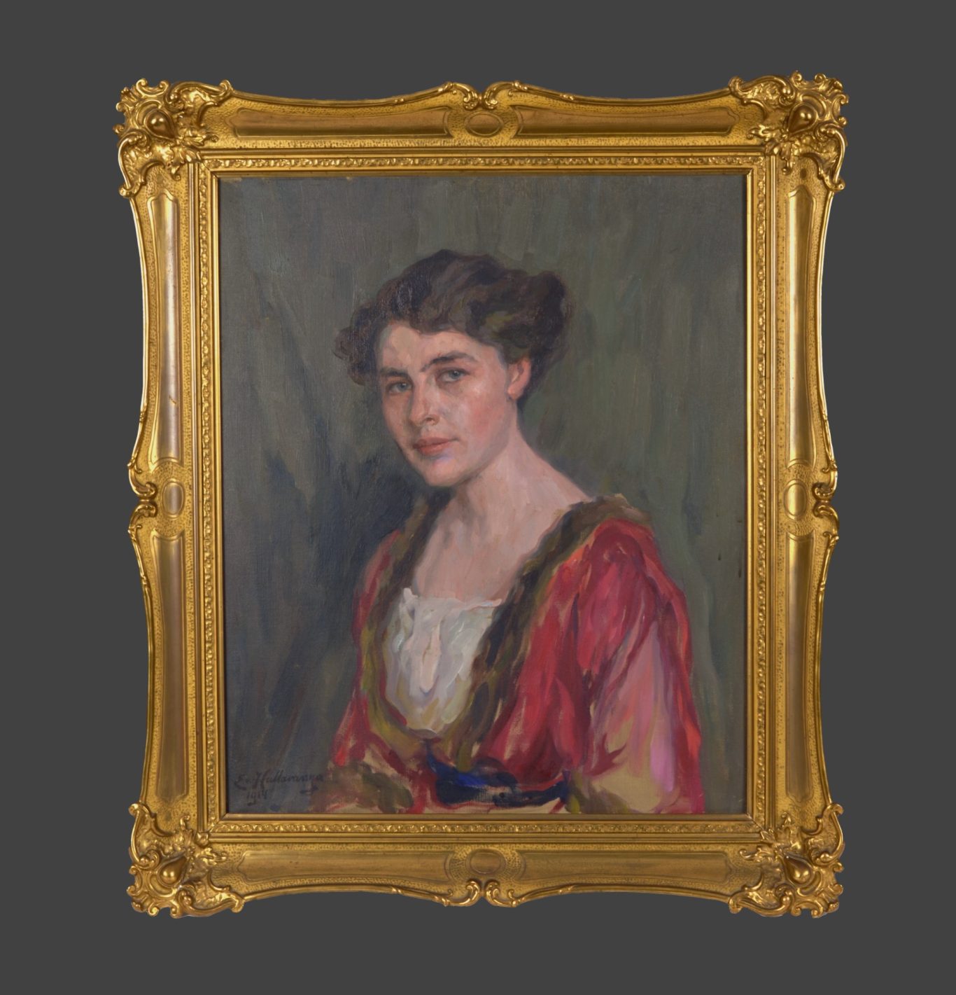 Emilie von Hallavanya, Porträt einer jungen Frau, 1914, Öl auf Leinwand, 67.5 x 54.8 cm, signiert unten links "E. v. Hallavanya 1914“, gerahmt (86 x 73 cm).