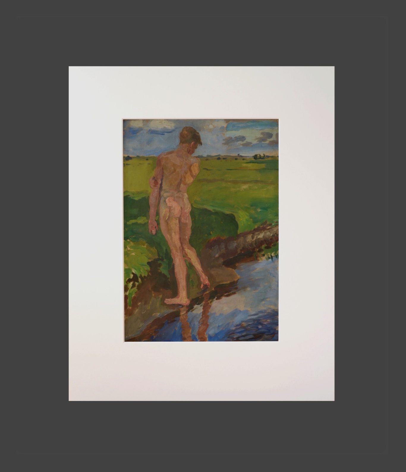 Das Bild wurde aufwendig in Museumsqualität mit einem neuen Passepartout (70 x 50 cm) der Firma HALBE ausgestattet. Ein passender Rahmen mit Museumsglas (entspiegelt, sehr hoher UV-Schutz, antistatisch, abriebbeständig) der Firma HALBE kann auf Wunsch beschafft werden.