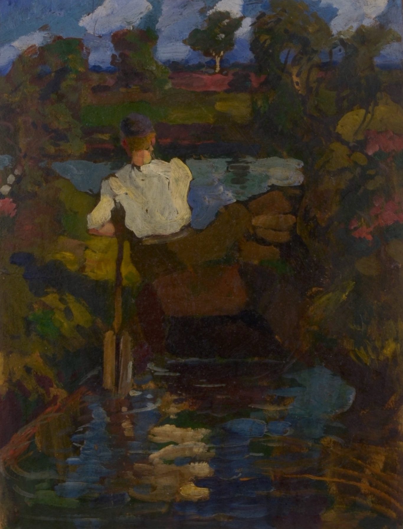Wilhelm Heinrich Focke, Rowing Boy on the River Wümme, c. 1910, oil on cardboard, c. 34 x 27 cm, unsigned, unframed.
