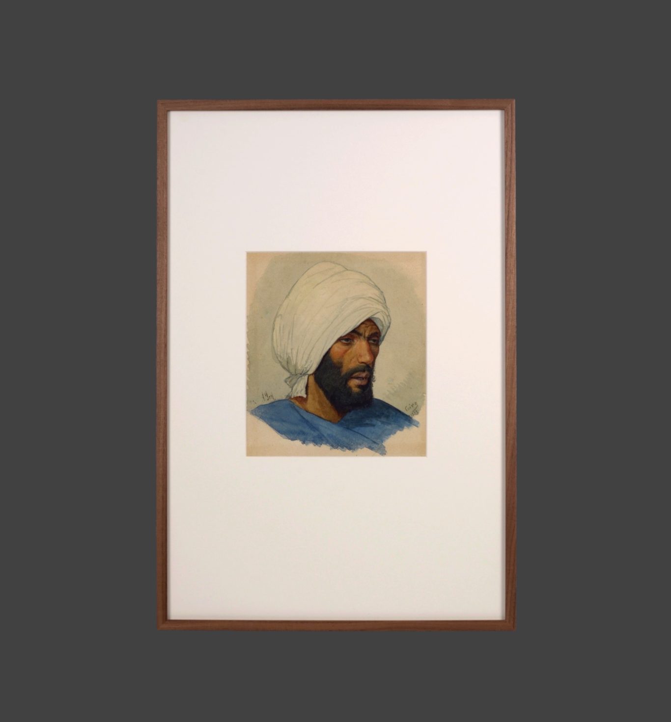 Adolf Seel, Porträt eines Orientalen, 1874, Aquarell, Tinte und Feder auf Papier, aufgezogen auf Pappe, 24.5 x 21.5 cm, signiert unten links "A. Seel" und unten rechts "Cairo 1874".