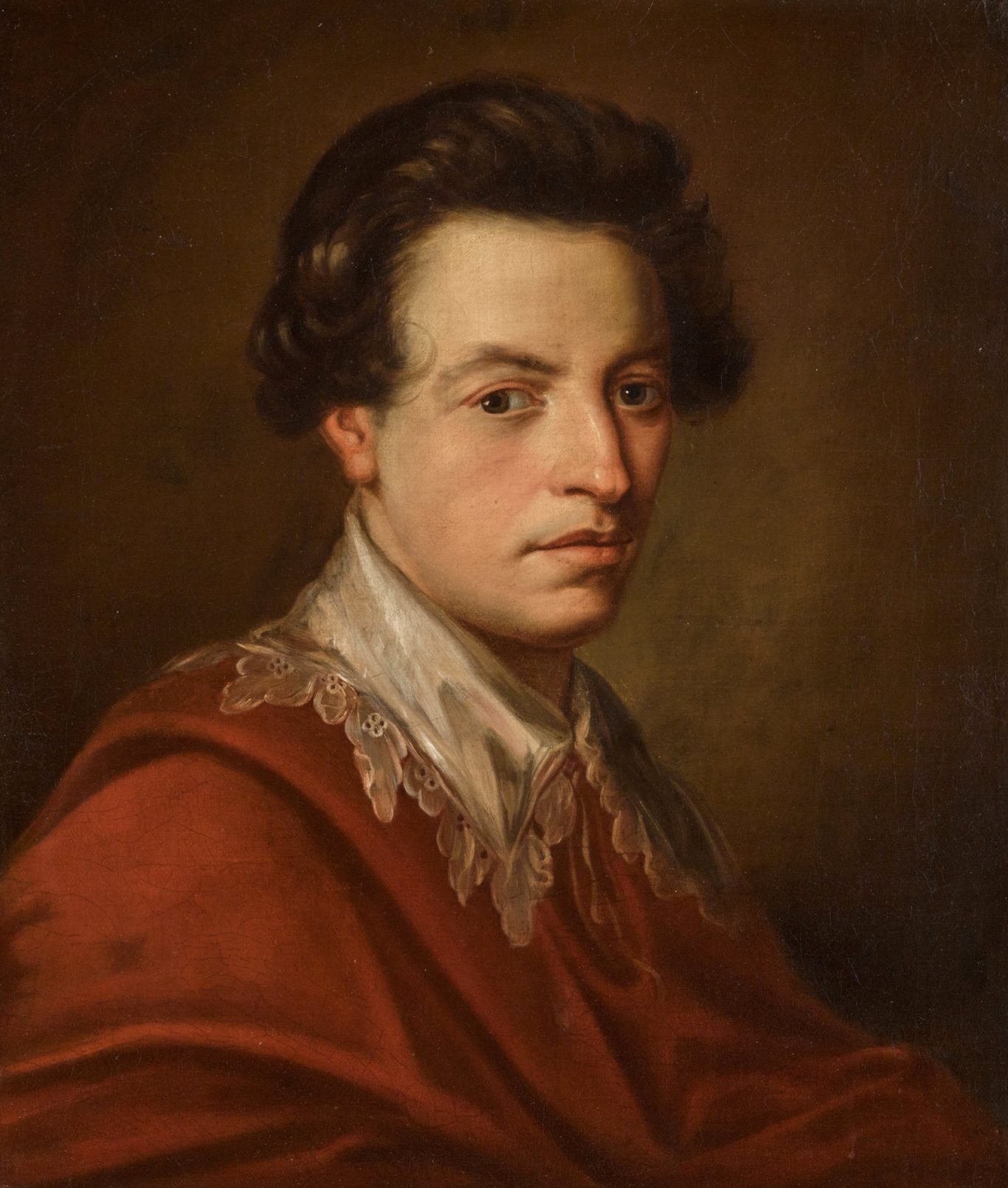 Angelica Kauffmann, Portrait of Alexander Gordon, 4th Duke of Gordon, c. 1770, oil on canvas, 54 x 45.2 cm, not signed, lined, some areas of retouching, with a beautiful frame of the 19th century (70.7 x 63.1 cm). Verso inscribed on the frame „449/53“, „R. Menas [?]“, „Ehrmann“ and on an old label „Nr 7 Engliches [sic] Porträt eines jungen Mannes“.