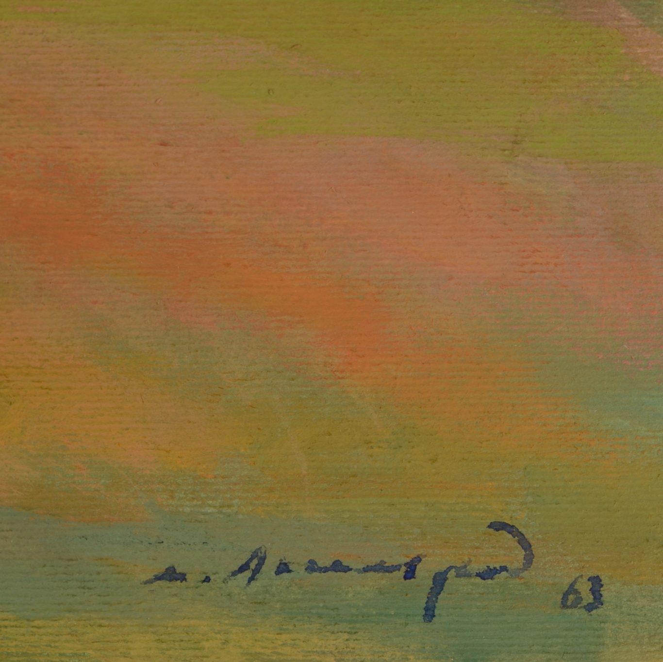 Meyer Axelrod, Landschaft mit Bahntrasse, 1963, Öl auf Karton, 55.2 x 74 cm, signiert und datiert unten rechts, auf der Rückseite handschriftlich auf Belarussisch bezeichnet. Zustand: Nadellöcher in den Ecken, insgesamt gut.