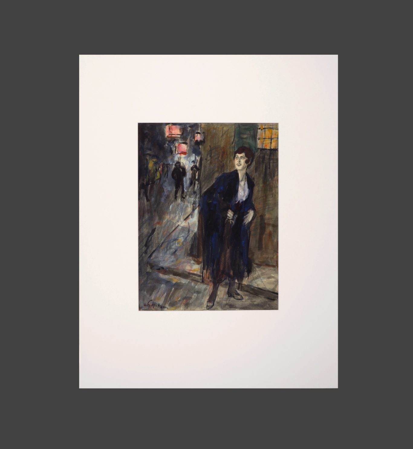 The work was provided – in museum quality – with a new passe-partout (70 x 90 cm) of the company HALBE. A fitting frame – in museum quality – with museum glass (anti-reflective, very high UV protection, anti-static, abrasion resistant) of the company HALBE can be provided on request.