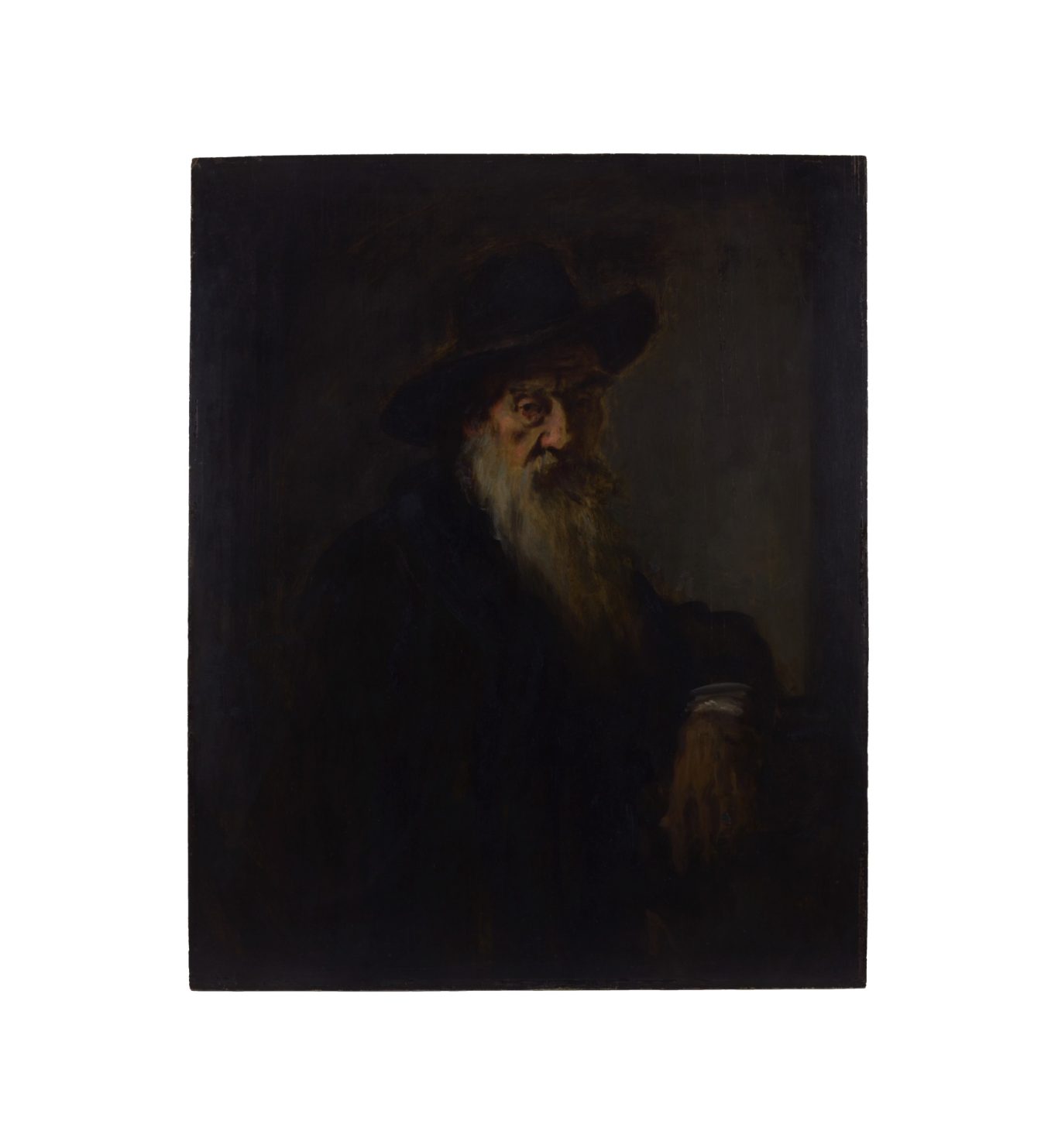 Leo Samberger, Portrait of Julius Frank, 1898, oil on wood, signed lower right "Leo Samberger", 97 x 79.5 cm, framed (frame currently being restored), inscribed (verso) i. a. „Leo Samberger fec“ and „biblischer Historienmaler Julius Frank“.