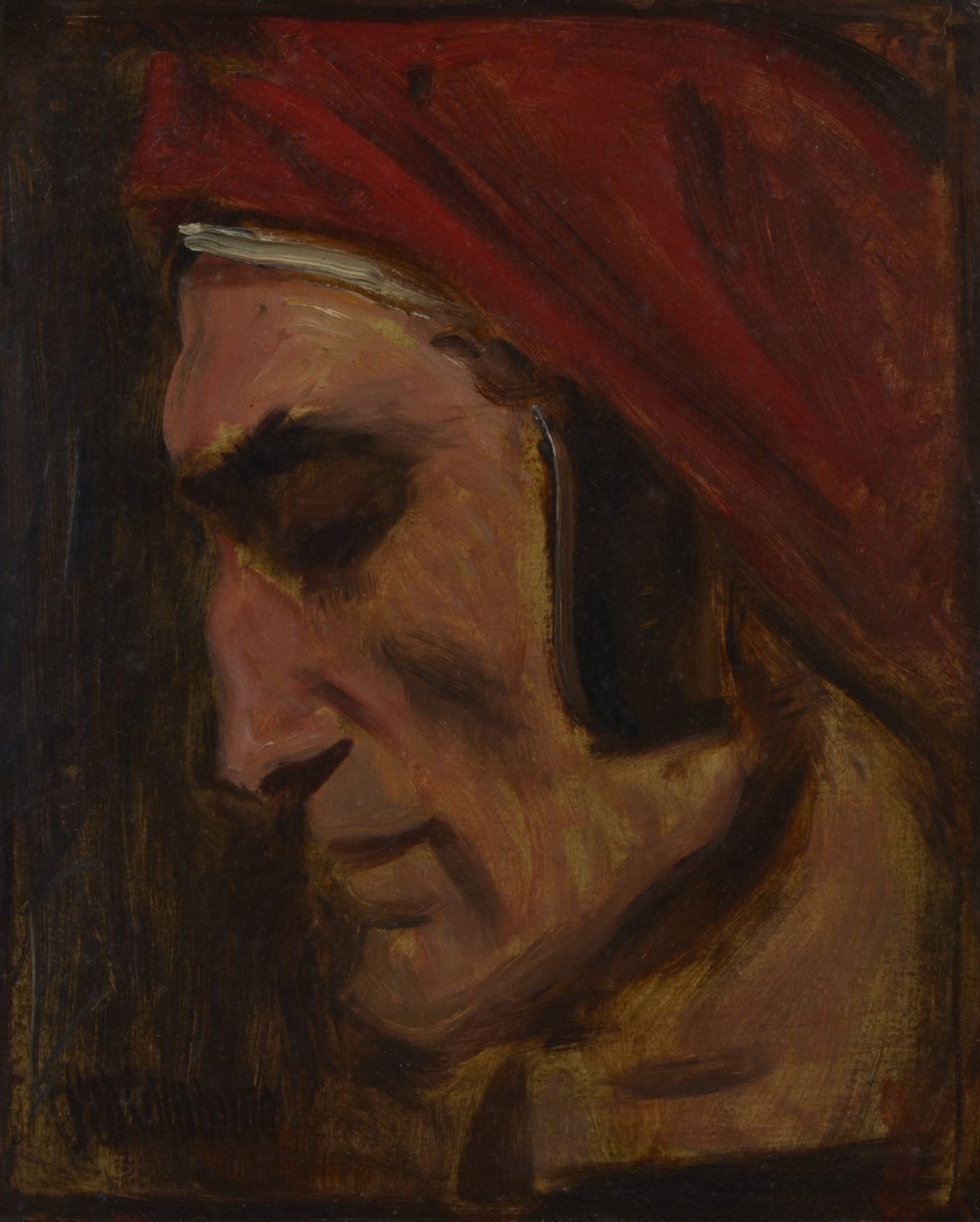 Leo Samberger, Head of Dante in Profile, c. 1920/30, oil on panel, signed lower left "Leo Samberger", 33.8 x 27.8 cm, framed (47 x 41.5 cm).