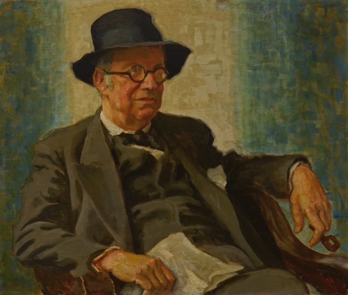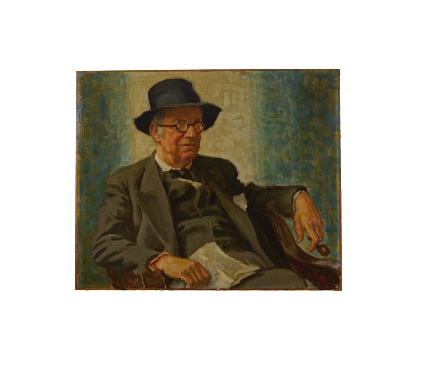 Armin Horovitz, Porträt Carl Rössler, 1937, Öl auf Holzplatte, signiert oben rechts "AHorovitz / [1]937" sowie auf Rückseite "AHorovitz", 75 x 89.6 cm, ungerahmt, bezeichnet auf Vorderseite "…Karl…[R]össler / …." und auf Rückseite „Carl Rössler“.
