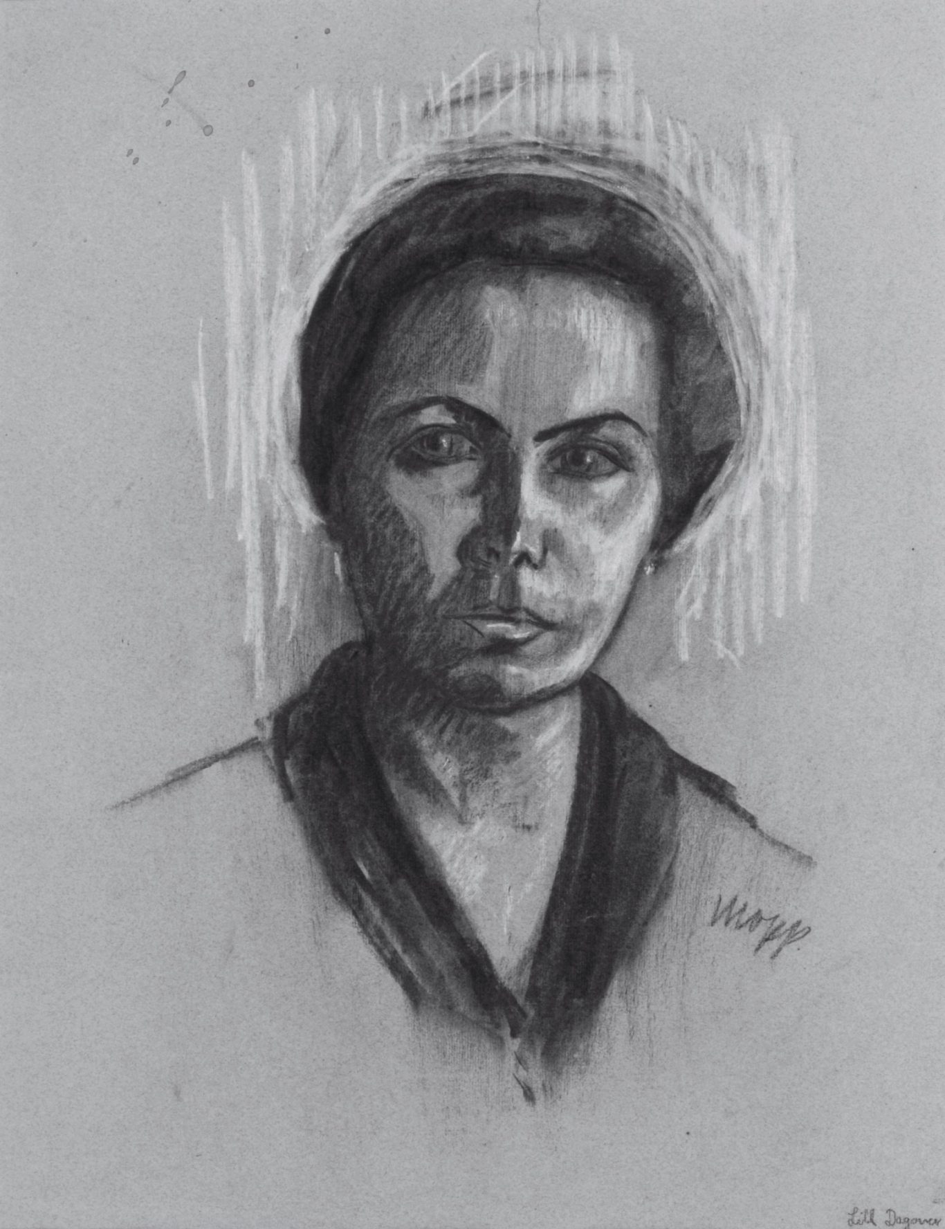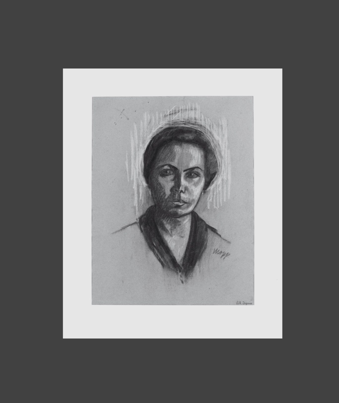 Max Oppenheimer, Portrait of Lil Dagover, c. 1938, charcoal drawing on paper, heightened with white, 51.5 x 40.5 cm, signed centre right "mopp.", inscribed below right (recto) “Lil Dagover”, unframed.