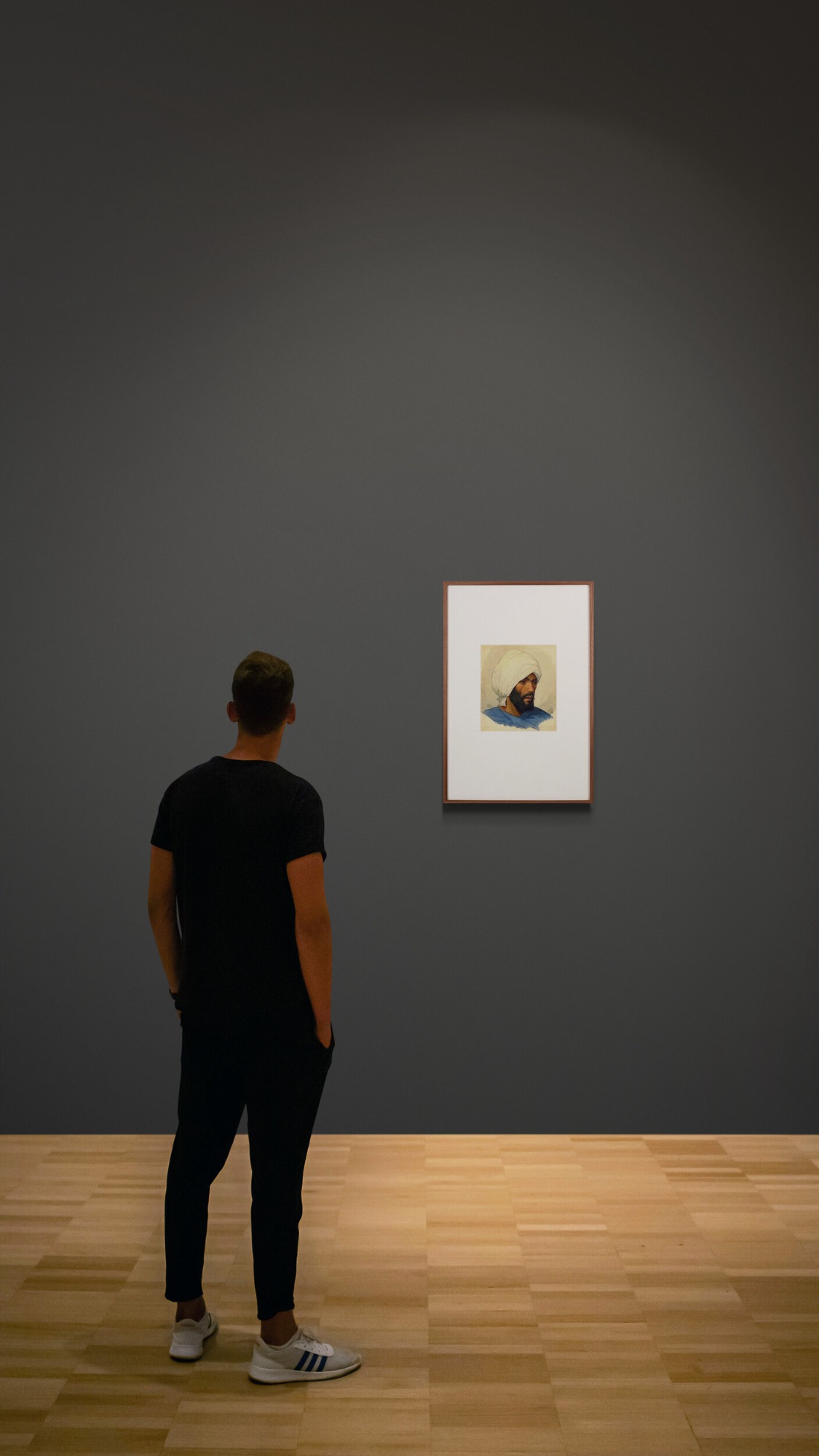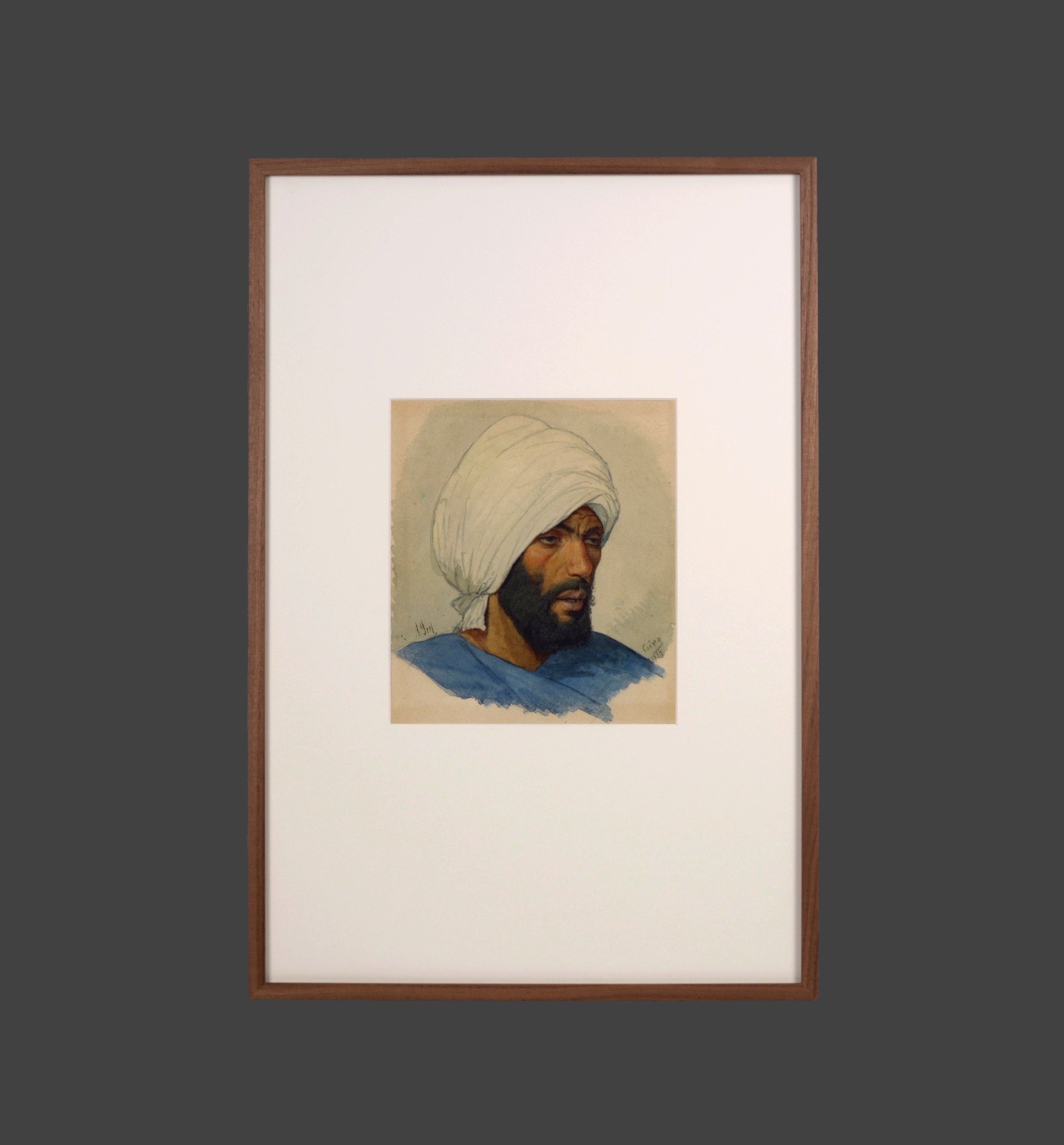 Adolf Seel, Porträt eines Orientalen, 1874, Aquarell, Tinte und Feder auf Papier, aufgezogen auf Pappe, 24.5 x 21.5 cm, signiert unten links "A. Seel" und unten rechts "Cairo 1874".
