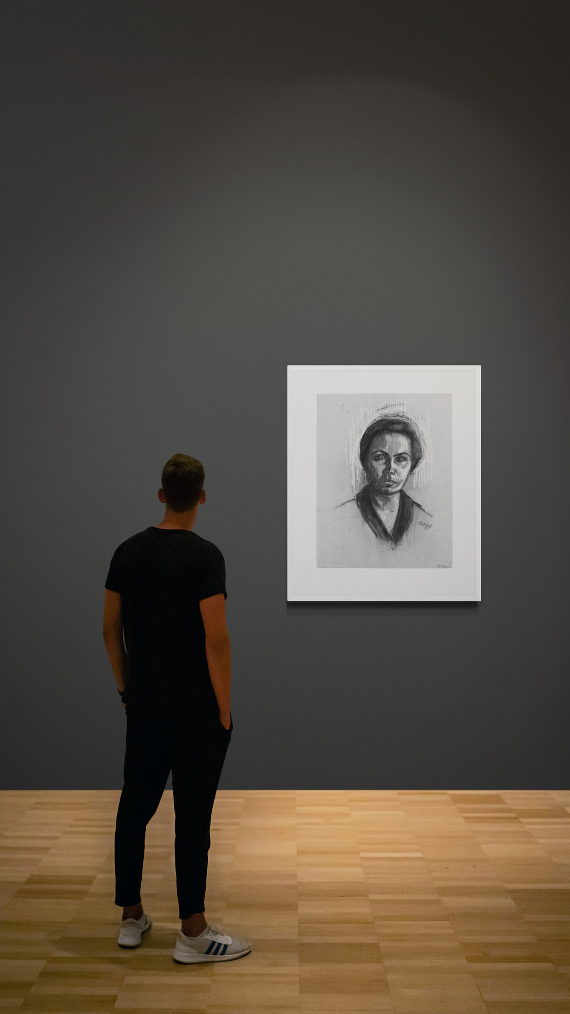 The work was provided – in museum quality – with a new passe-partout (70 x 90 cm) of the company HALBE. A fitting frame – in museum quality – with museum glass (anti-reflective, very high UV protection, anti-static, abrasion resistant) of the company HALBE can be provided on request.