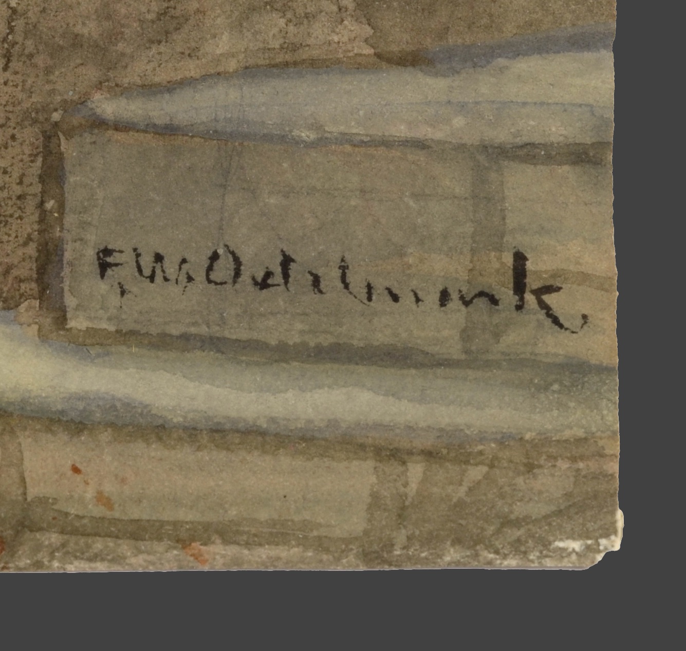 Frans Wilhelm Odelmark, Tombstones on a Church Wall, c. 1870/80, watercolor on paper, 33 x 36 cm, signed lower right “F.W.Odelmark“, unframed.