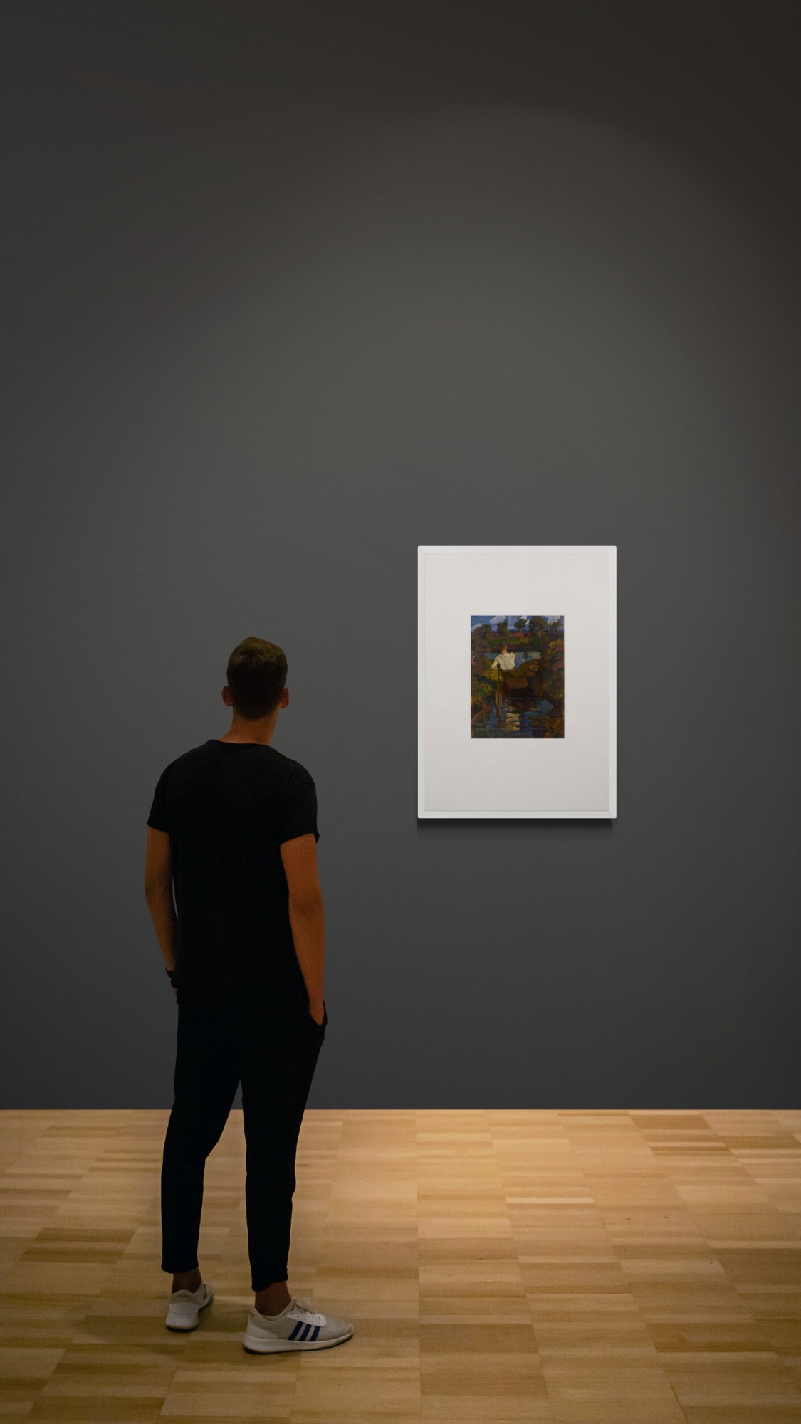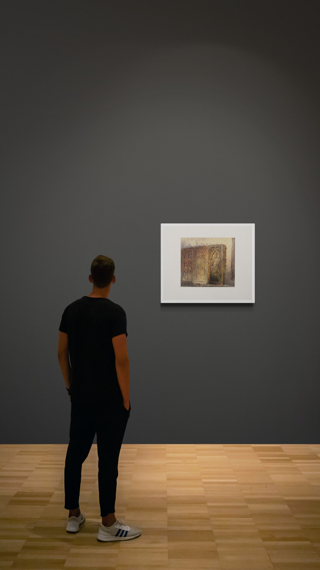 The picture was provided – in museum quality – with a new passe-partout (80 x 60 cm) of the company HALBE. A fitting frame – in museum quality – with museum glass (anti-reflective, very high UV protection, anti-static, abrasion resistant) of the company HALBE can be provided on request.